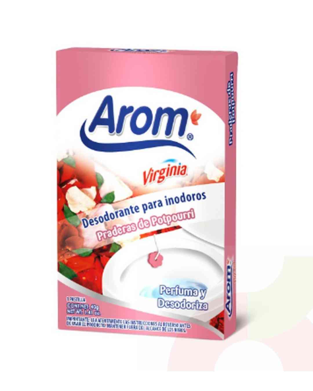 Pastilla de 40 gramos, generalmente incluye un gancho para colgar en el borde del inodoro.