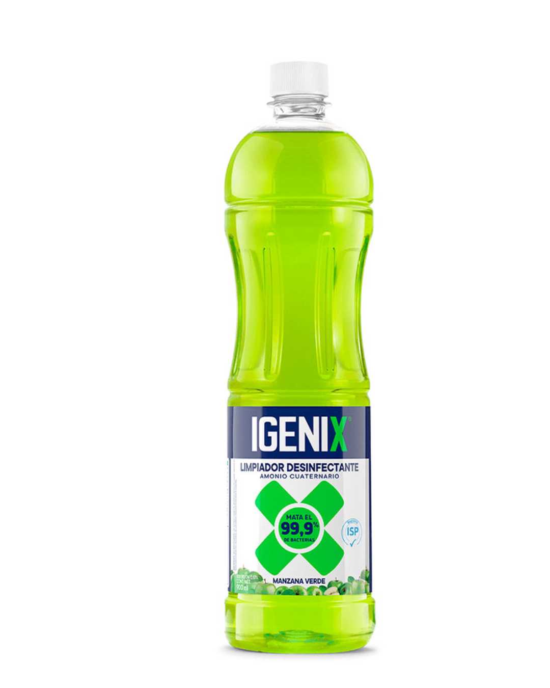 Limpiador Desinfinfectante Igenix Manzana Verde 900ml Igenix Limpiador Desinfectante Para Pisos limpia, aromatiza y desinfecta tu hogar, matando el 99,9% de bacterias de tus pisos. Al utilizar este producto ayudarás a mantener tu hogar libre de gérmenes que pueden afectar tu salud y la de tu familia.