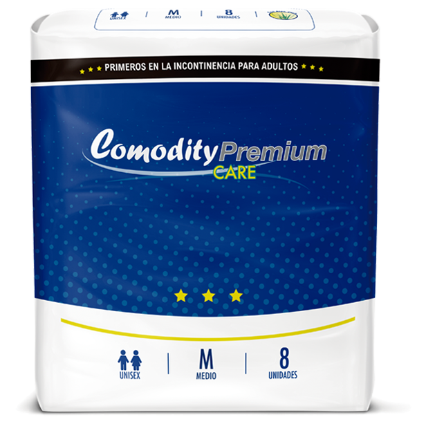 Es un producto de incontinencia severa o severa/fuerte, diseñado para adultos con un contorno de cintura de hasta 124 cm aproximadamente.